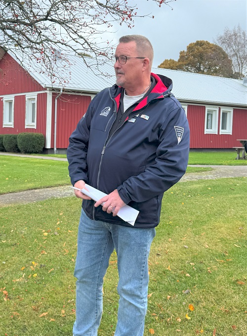 Bildtext: Hans Koljonen framför en blivande skolbyggnad.